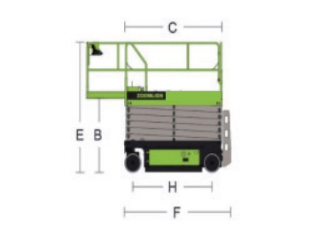 | A - 最大平台高度(室内/室外) | 5.8m/4.4m |